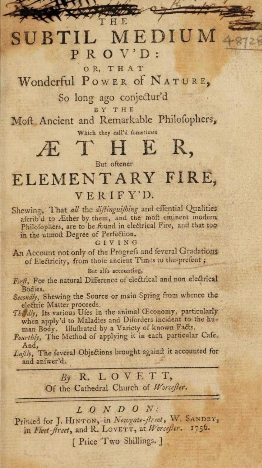And then comes Electricity, the force that leaps, crackles, and binds matter invisibly. In the 17th century, as described in R. Lovett’s “The Subtle Medium Prov’d”, electricity was recognised as a subtle, universal medium connecting and influencing all matter. Observations of lightning, amber attracting straw, and delicate currents passing through metals were understood as tangible signs of this invisible energy.