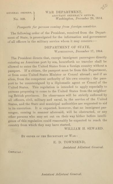 During the Civil War, for example, no one could legally leave or enter the United States without a passport.
