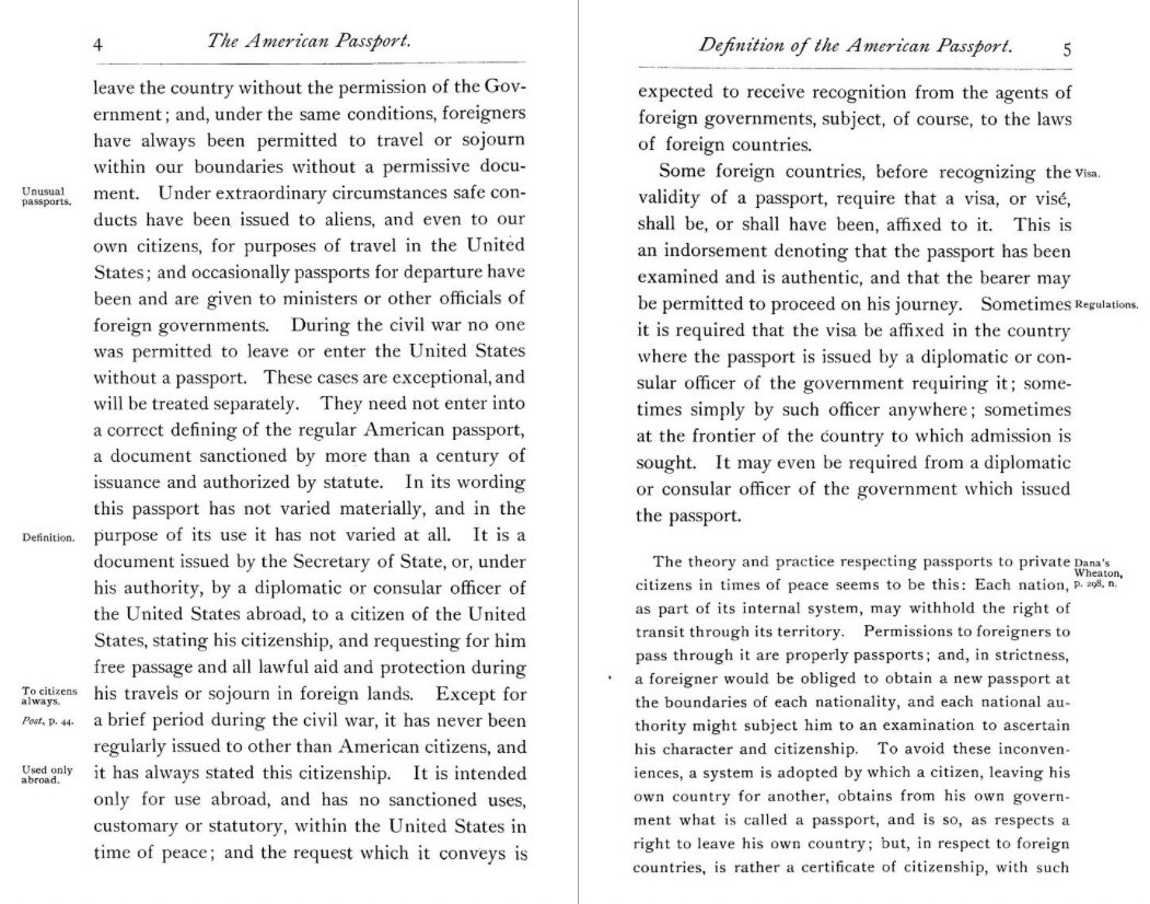 Yet, as the 1898 text stresses, none of these definitions accurately captures the American passport, as it developed under the Constitution.